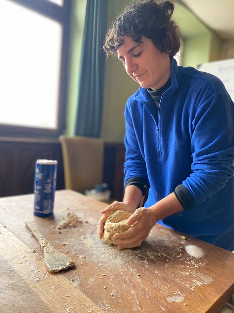 Comenzamos con Éric, el panadero vecino, que vino a mostrarnos cómo hacer pan. De pronto, la palabra “transmisión” deja de ser un concepto: es harina sobre la mesa, manos que aprenden. Todos, sin importar su nacionalidad, literalmente metieron las manos en la masa.
