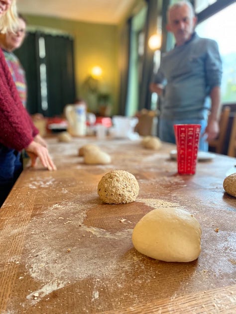 We began with Éric, the baker next door, who came to show us how to make bread. Suddenly, the word “transmission” is no longer a concept: it’s flour on the table, hands learning. Everyone, no matter their nationality, literally got their hands in the dough.