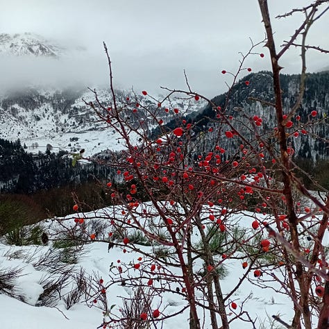 El domingo caminamos. El equipo, el bosque, la montaña, la nieve. Y pienso que incluso las respiraciones silenciosas también contribuyen a dar forma al lugar y a materializar la idea de “hacer comunidad”.